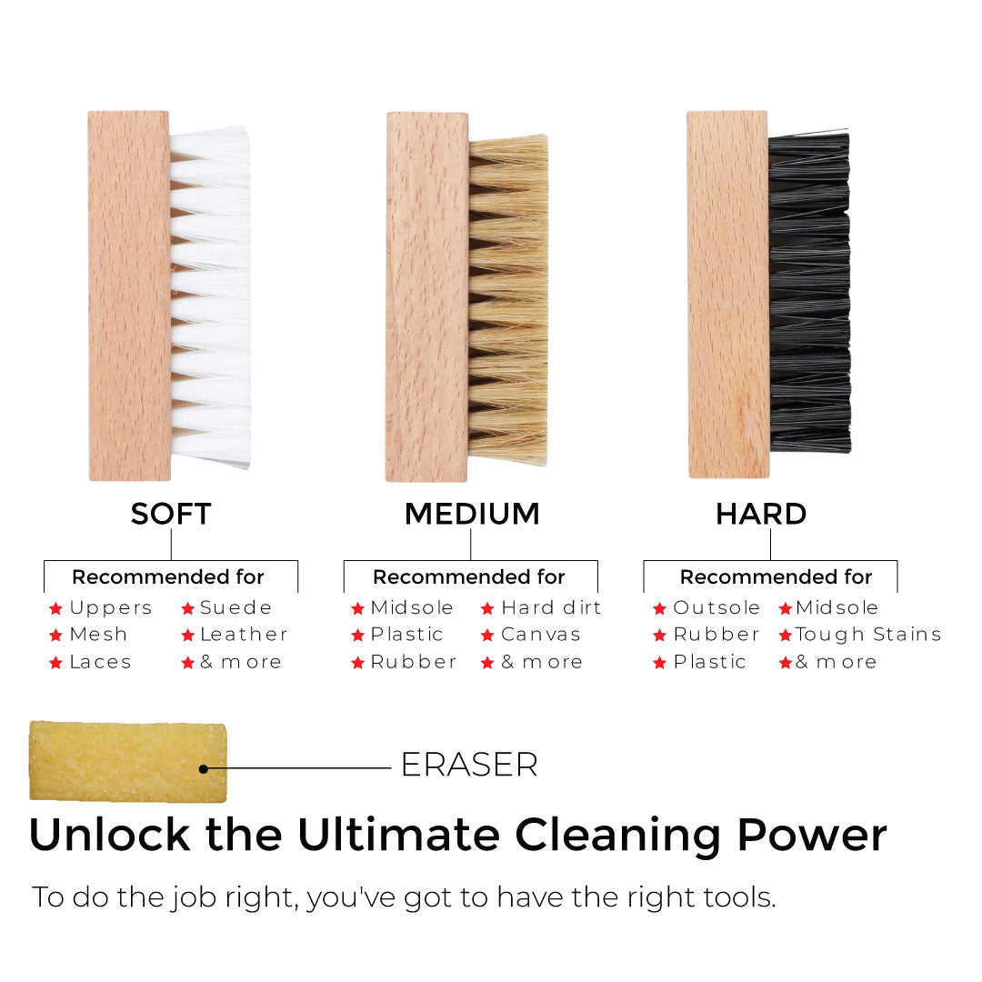 This is the best shoe cleaning kit anyone needs for their shoes. I cleaned my white sneakers with them and they became brand new. The brushes are durable and hardness is suitable. The lotion is good and removes all the dirt particles from the shoes. Must buy.