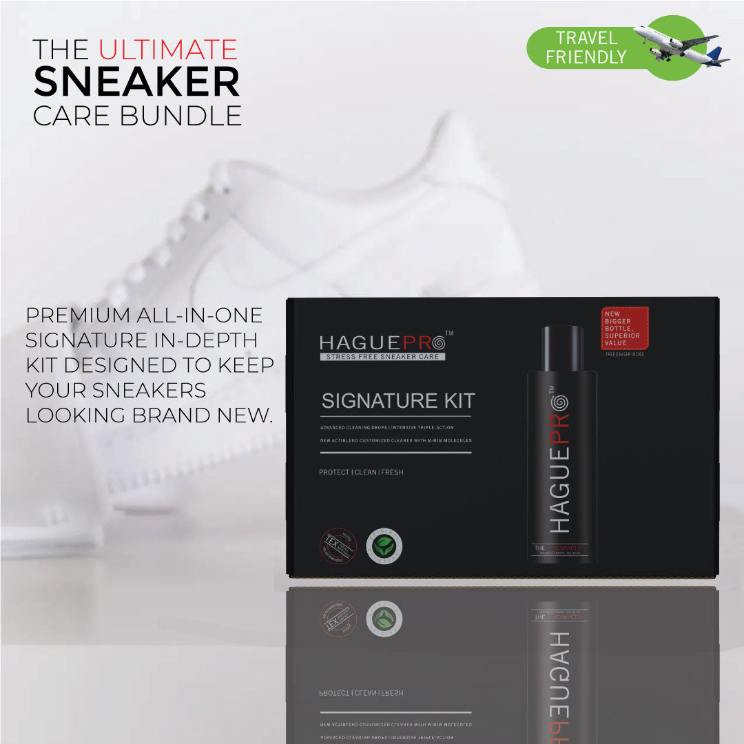 Elevate your sneaker care game with the Hague Protect Signature Shoe Cleaning Kit—the ultimate choice for keeping your sneakers looking fresh, clean, and ready to impress. Perfect for sneakerheads who settle for nothing but the best.