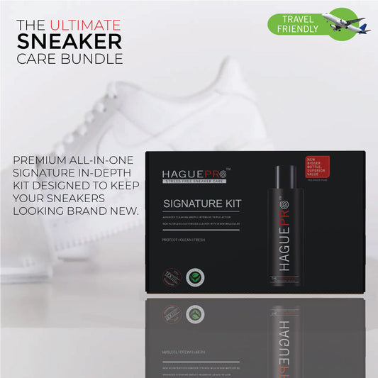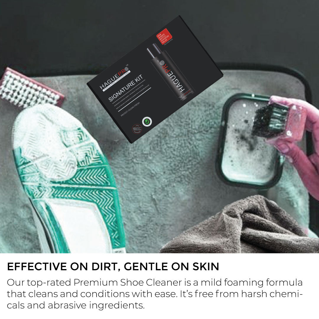 Introducing the Hague Protect Signature Shoe Cleaning Kit- your go-to solution for keeping your favourite sneakers in pristine condition. This comprehensive kit is more than just a cleaner; it's an essential tool for sneaker lovers who demand the best for their footwear.